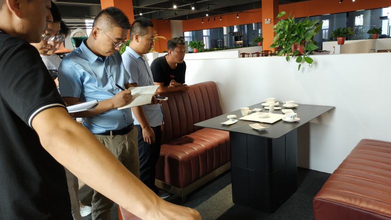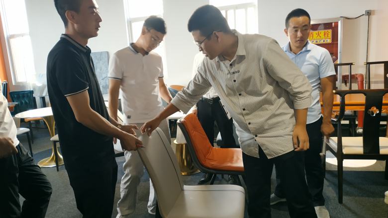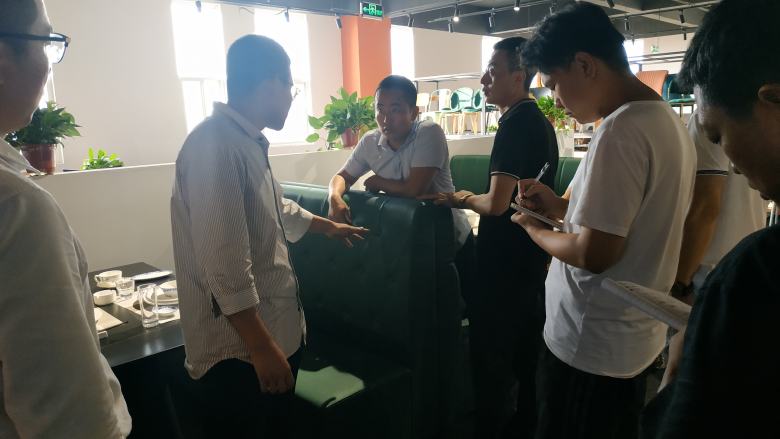隨后,周經(jīng)理帶領(lǐng)新伙伴挨個對展廳里面的餐桌椅及電動餐桌和卡座沙發(fā)做了深入講解,現(xiàn)場不明白的問題新員工也都及時的得到了清晰地答復(fù)。在后面的互動環(huán)節(jié),周經(jīng)理還隨機點名讓新員工對展廳里面的餐桌的材質(zhì)進行回答,還包括電動餐桌的尺寸計算,餐椅配備數(shù)量計算等基礎(chǔ)問題進行了考核,大家的回答幾乎都是正確的。