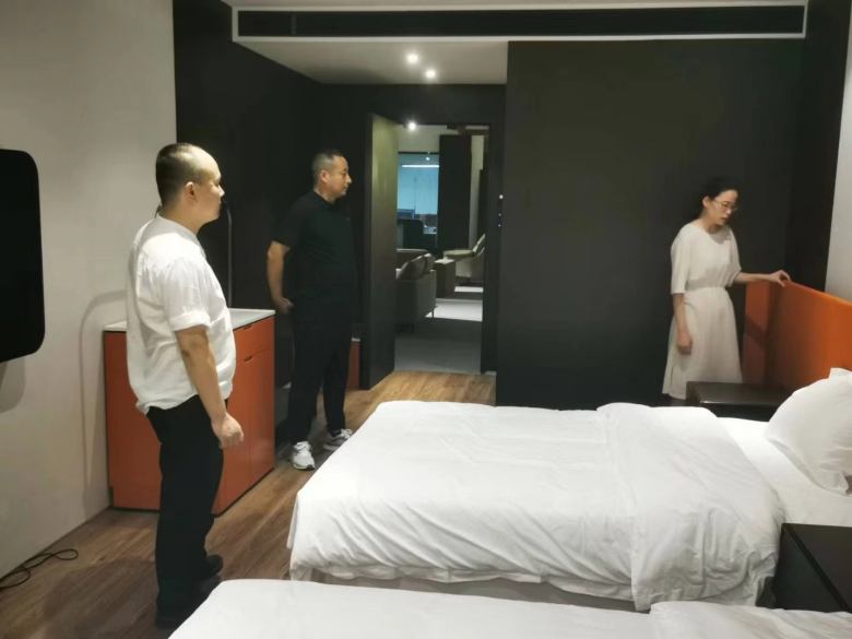 國慶假期期間,當(dāng)很多公司放假后人們都攜帶一家老小外出游玩的時候,來自商洛丹鳳縣的酒店客戶放棄休假時間專程來到西安酒店家具生產(chǎn)廠家排名前三的博菲克酒店家具工廠,在廠里等候已經(jīng)的博菲克總經(jīng)理楊星親自熱情的接待。 這次過來之前,客戶順路先去了一趟我們博菲克九月份簽約的商洛某高端民宿工地現(xiàn)場,這里有我們已經(jīng)做好的酒店家具正在交貨安裝。對于酒店客戶而言,選擇酒店家具廠家無可厚非的三個重點就是品質(zhì)、價格和服務(wù)。當(dāng)他們在商洛民宿項目仔細(xì)端詳著每一件家具工藝的時候,熱情的甲方也迎上前來主動扮演起了“推銷員”。“我們這個民