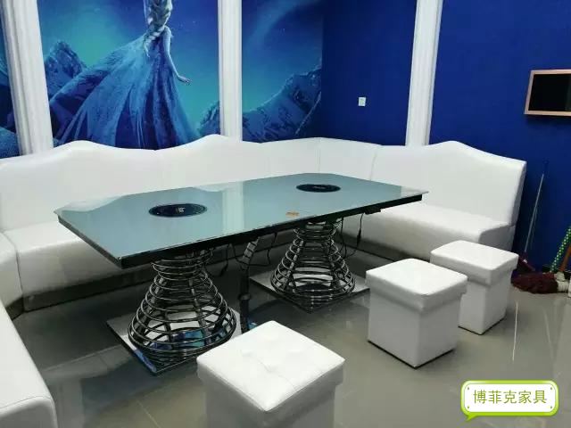 卡座沙發(fā)采用的是油蠟皮,價(jià)格實(shí)惠,雖然沒(méi)有超纖皮那么結(jié)實(shí)耐用,但也是對(duì)得起他的價(jià)格的。茶幾結(jié)合時(shí)尚與實(shí)用,采用不銹鋼管焊制的底架,也很好的解決了電磁爐的線路問(wèn)題,臺(tái)面采用焗油玻璃,既有KTV應(yīng)有的時(shí)尚,也解決了餐飲所要的實(shí)用。款式的多樣性,使得工廠放樣師傅也是費(fèi)了一番功夫,索性效果也是預(yù)期的好,可見(jiàn)我們的放樣師記憶之高超。