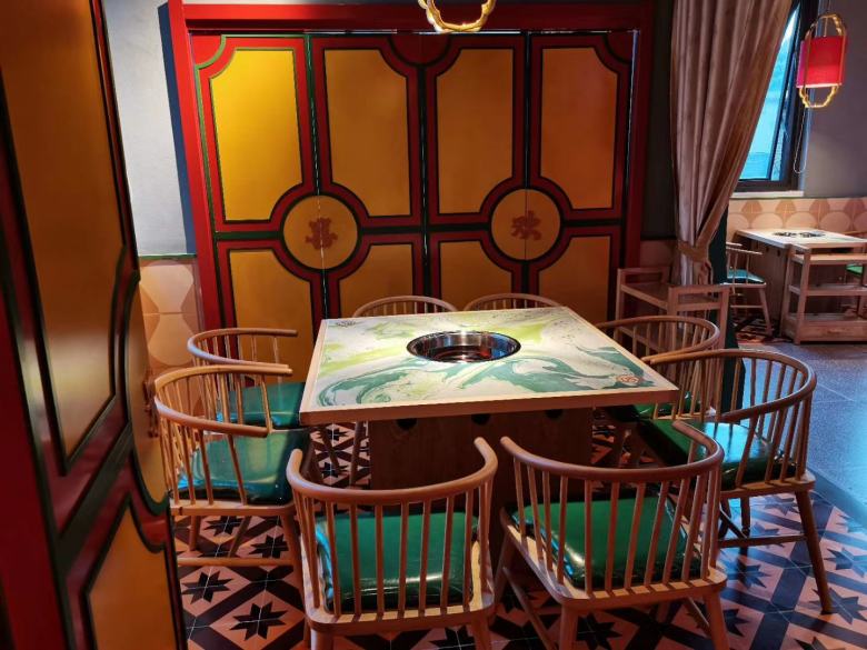 為曲江歡喜記火鍋店定做的火鍋?zhàn)酪?,與其店面裝修環(huán)境融為一體,帶給人一種特別溫馨的感覺,瞬間就能帶給客戶一種翱翔在草原上的氣息。