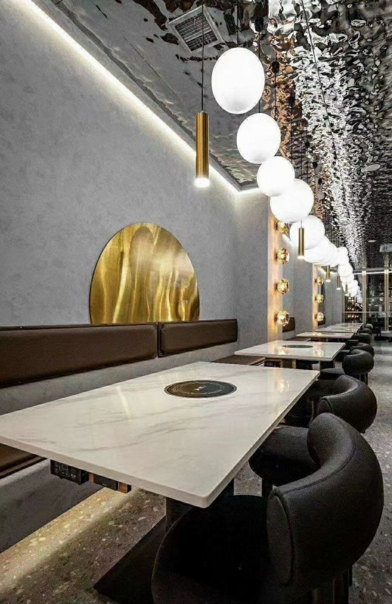 除了在裝修上重金打造外,火鍋?zhàn)兰揖呱贤顿Y人也是格外大方。所有火鍋?zhàn)谰x用高檔的巖板臺面,質(zhì)感大氣,彰顯非凡。餐椅采用星級酒店布藝沙發(fā)椅,超級舒適;卡座沙發(fā)使用國內(nèi)領(lǐng)先的優(yōu)質(zhì)皮革和布料,結(jié)合實(shí)木框架,拼接出完美的卡座沙發(fā)。