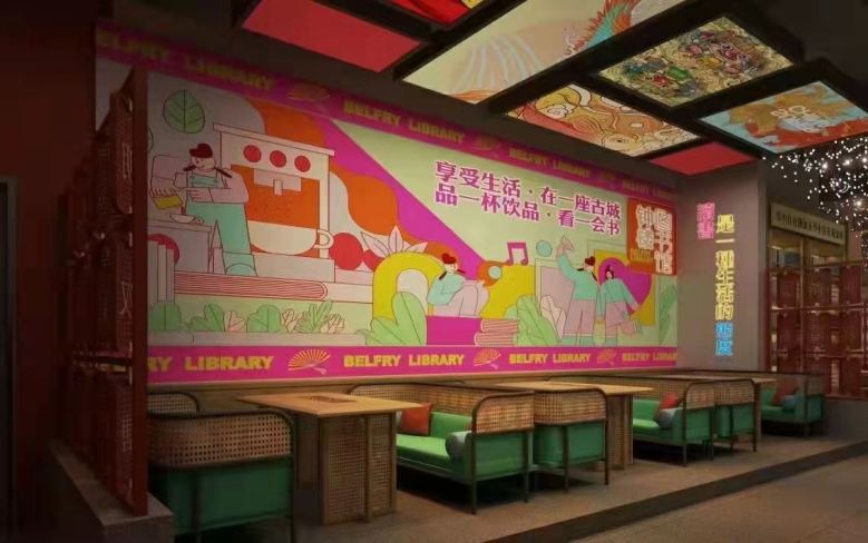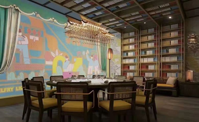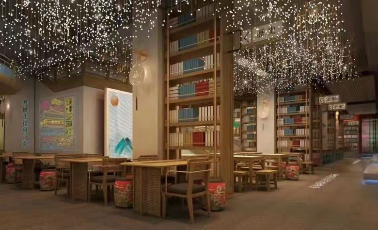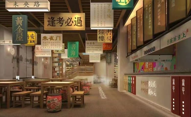 西安長(zhǎng)安大排檔之鐘樓圖書(shū)館店餐飲桌椅定制案例
