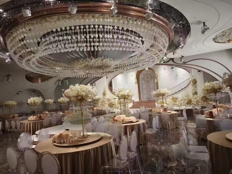 銅川吉富宴會(huì)中心是按照高標(biāo)準(zhǔn)建造的承接宴席的餐飲場所,室內(nèi)宴會(huì)廳由香檳廳、國風(fēng)廳、海洋廳、水晶廳組成。香檳廳室內(nèi)空間無立柱設(shè)計(jì),層高5米,可同時(shí)容納25-31桌賓客就餐,設(shè)計(jì)風(fēng)格時(shí)尚。國風(fēng)廳可容納16-24桌就餐,適合中式婚禮的新人使用。海洋廳可容納28-36桌就餐,空間設(shè)計(jì)主要體現(xiàn)出東南亞元素,很適合夏天婚禮。水晶廳可容納28-36桌同時(shí)就餐,粉色浪漫,配備有獨(dú)立新娘電梯。另外,該宴會(huì)中心還設(shè)有戶外草坪供新人舉辦草坪婚禮使用。